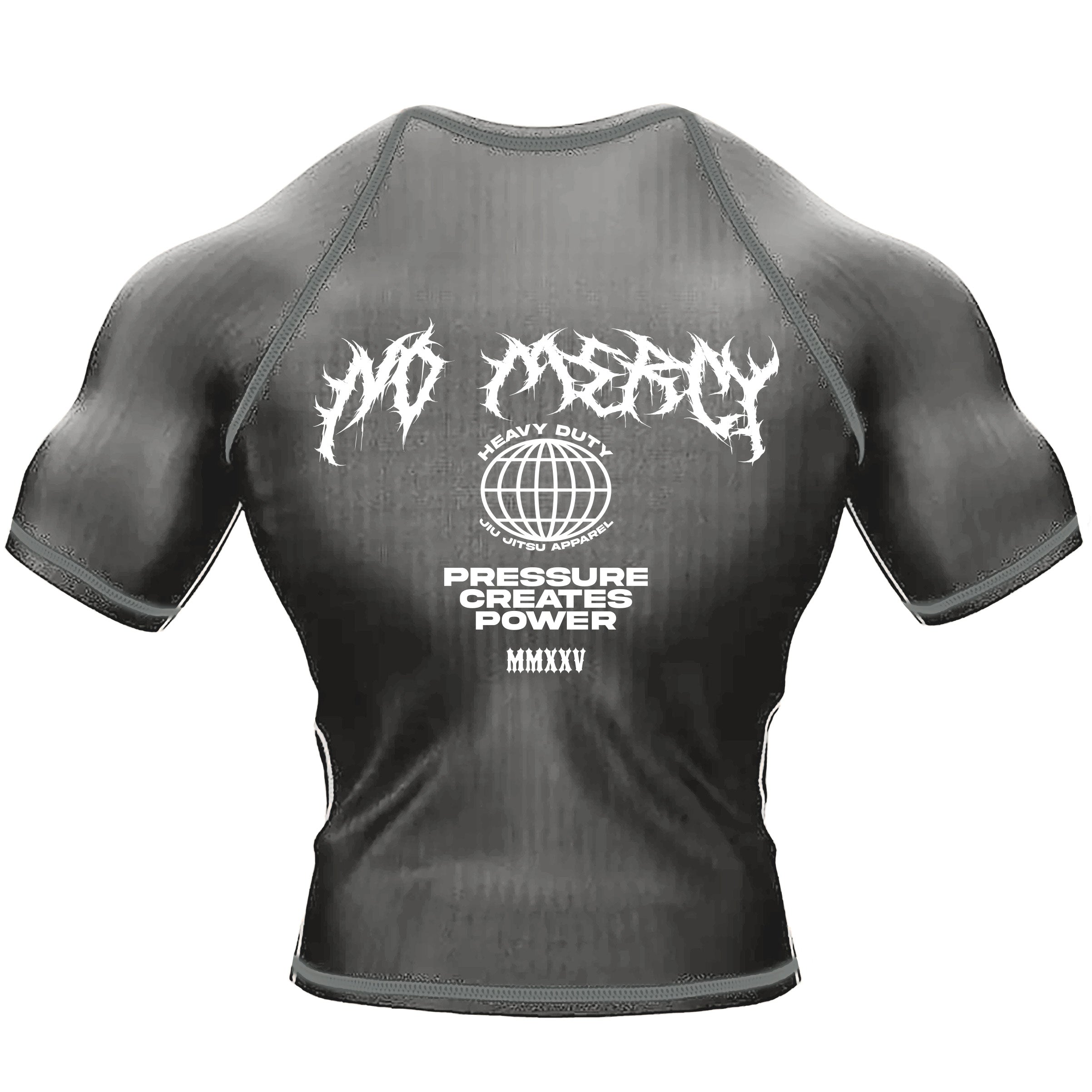 Introducing the No Mercy Jiu-Jitsu Rash Guard in Grey, designed for those who thrive under pressure and never quit. Made from high-performance, moisture-wicking compression fabric, this rash guard offers superior breathability, flexibility, and muscle support to keep you cool and focused during intense training sessions. The bold graphic on the front and back features the powerful words “No Mercy” and “Pressure Creates Power”, a reminder to push through every challenge and come out stronger. With a second-skin fit, reinforced stitching, and sublimated graphics that won’t crack, fade, or peel, this rash guard is perfect for warriors who train with relentless determination.
